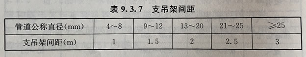 7、潔凈手術(shù)部氣體配管的安裝支吊架間距應(yīng)符合表9.3.7的規(guī)定。銅管、不銹鋼管道與支吊架接觸處,應(yīng)作絕緣處理。