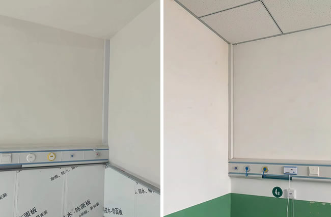 醫(yī)院病房床頭醫(yī)用氣體管道預(yù)埋開(kāi)槽深度30mm左右,寬度60mm左右即可,兩根管道分別套兩根20mm的PVC管即可。預(yù)留高度一般為醫(yī)療設(shè)備帶中間位置,距離地面1350-1450mm的高度。注意電源線和呼叫線、以及網(wǎng)絡(luò)信號(hào)線等需要安裝到設(shè)備帶上的設(shè)備線路,也要預(yù)留到這個(gè)高度。每間病房同面墻體有兩張以上床位的時(shí)候,管線只需要預(yù)留一個(gè)點(diǎn)位的即可,其余延長(zhǎng)部分可在設(shè)備帶內(nèi)變接。